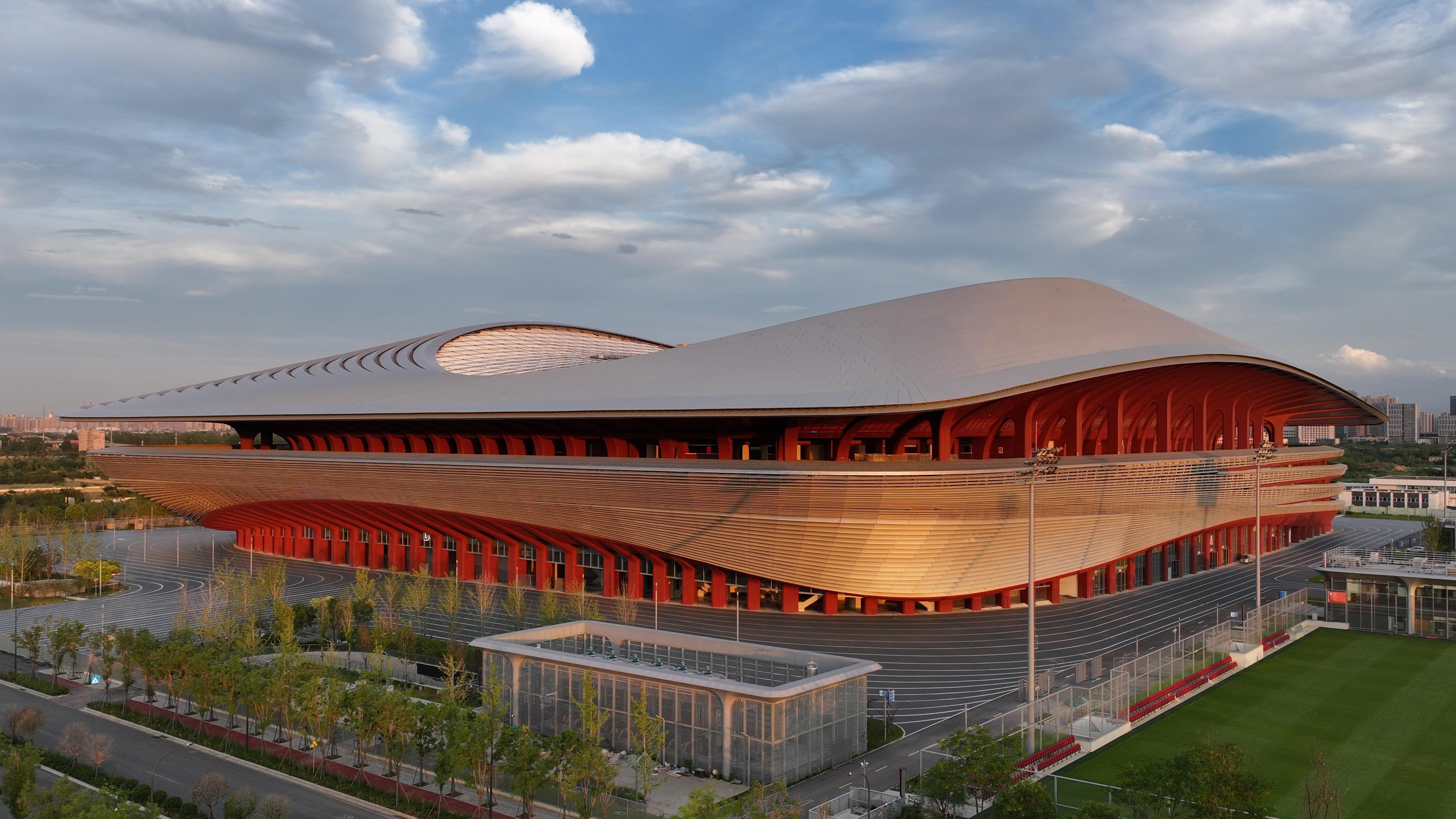 西安国际足球中心项目场馆设计由英国扎哈建筑事务所担纲方案设计,以方正恢弘的造型、简洁飘逸的悬挑屋面、陶土色彩的运用,充分彰显了西安历史文化底蕴和传统建筑符号。项目设计标准高,施工难度大,应用了全球首创双层索网屋盖、马鞍形沉浸式看台和通风加热草坪等设计,将为球迷提供完美观赛体验。